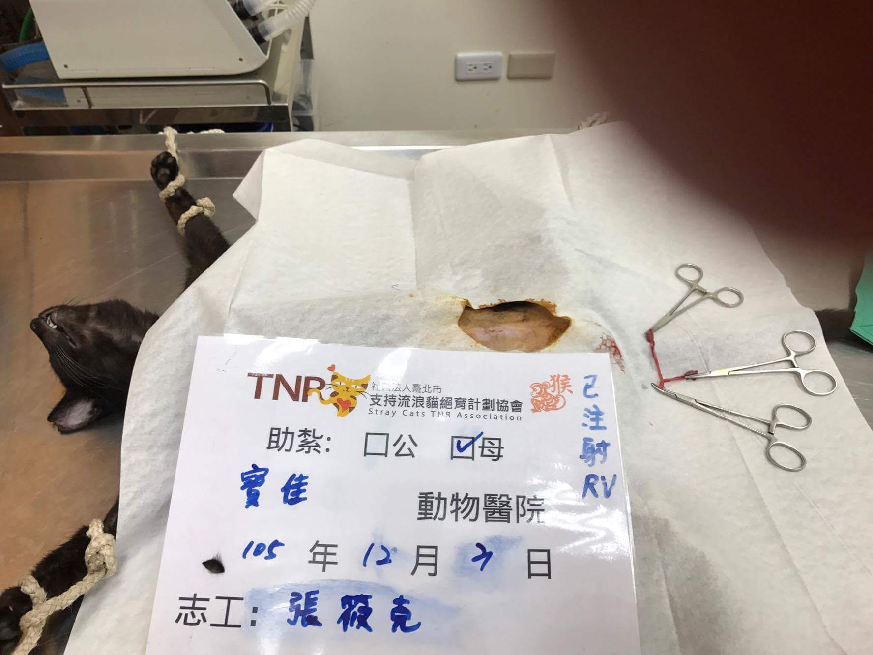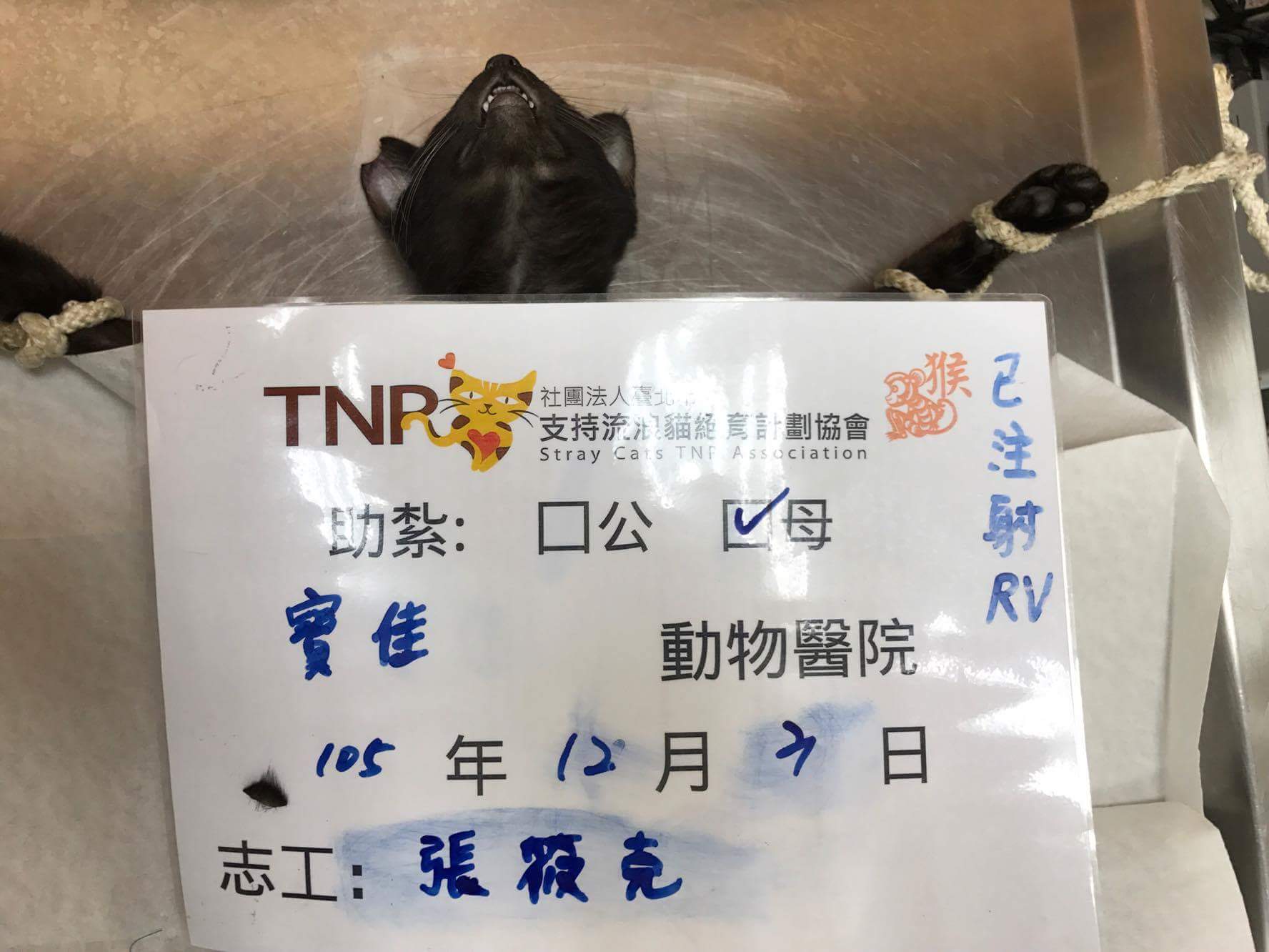 於是友人通知我到場捕抓,黑貓成功進籠,便帶回送醫院執行TNVR