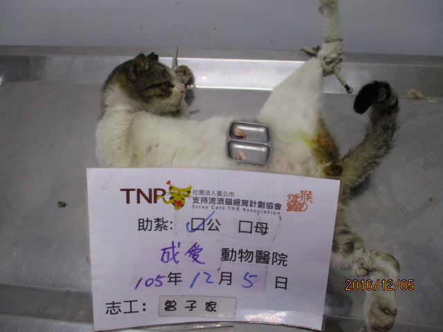 花色: 白底虎斑 誘捕地點: 彰化埔心鄉瑤鳳路