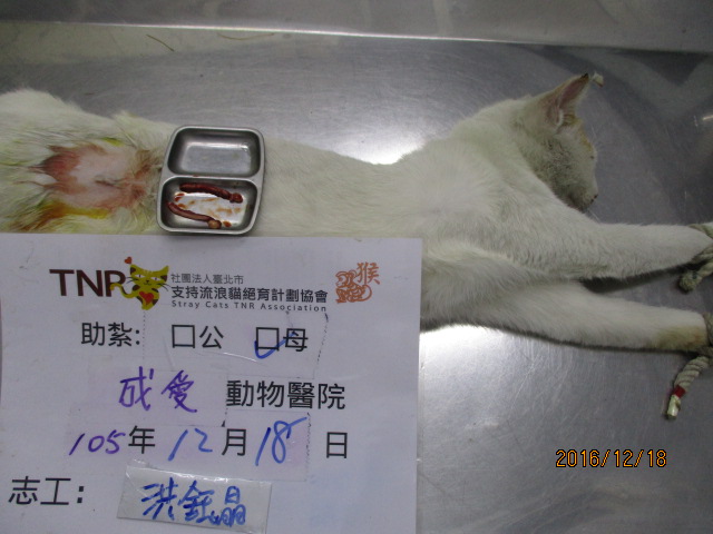 結紮醫院: 成愛動物醫院 結紮費用: 1500