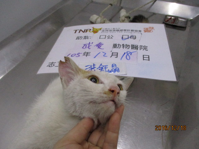 福興專案,該貓(妹妹)為貓媽媽第一胎,哥哥已在9月中旬誘捕結紮完成,當初誘捕哥哥時,妹妹防備心較重不易靠近,經過一個多月時間,妹妹因哥哥的關係,變得比較願意親人,故趁春天前誘捕結紮,以防止繼續繁衍的問題。