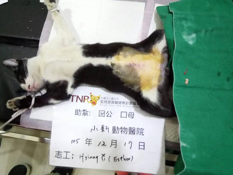 誘捕者暱稱: Esther 性別: 公 花色: 黑白賓士 誘捕地點: 高雄市龍德路 結紮醫院: 小新動物醫院 結紮費用: 700 助紮者: 已付款:Pei Hong Linx3, Q Bass Hsiaox3 額外醫療費用申請: 隱睪公貓,額外申請費用$1000 特別說明與誘捕心情: 越是接近越是容易錯過。冬天即將來臨每天回家路上差不多浪寶們應該都可以安心過冬。但是出乎意料的這隻寶貝,夜深人靜大家應該都入睡時竟然有隻浪寶在路邊翻著垃圾找食物,定睛一看是個不認識的浪寶,而且還沒剪耳!原本放鬆的心情突然緊繃起來,冬天即將來臨時最害怕落單的寶貝在外辛苦生存,於是只好馬上拼回家拿工具。一切辛苦都值得,只要看到他們能平安生活。謝謝醫院的大家和協會的平台,助紮費用還期望社會大眾的幫忙了。