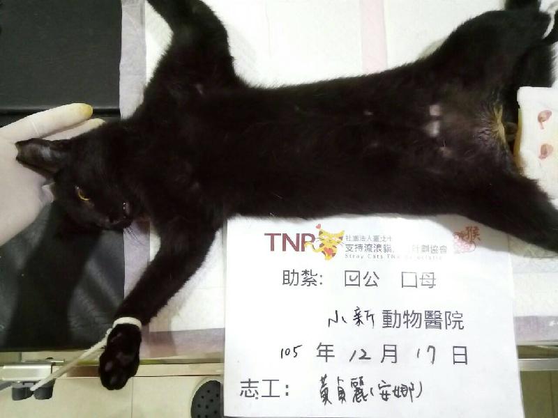 誘捕者暱稱: 真麗 性別: 公 花色: 黑 誘捕地點: 高雄市興華路 結紮醫院: 小新動物醫院 結紮費用: 700 助紮者: 已付款:Pei Hong Linx3 額外醫療費用申請: 特別說明與誘捕心情: 貓咪在都市生存已不容易,更何況是生存在都市市場的貓咪,不友善的生活環境與攤販驅趕,導致貓咪的防備心慎重!每次餵食這塊區域,貓咪都認得我的機車聲,卻還是不肯讓我逼近他們!而這幾隻今年中才來到這個世界的小朋友,終於等到他們可以結紮的年紀了!所幸牠們對於誘捕籠沒有很大的警覺性,於是很順利地就將牠們誘捕到了!