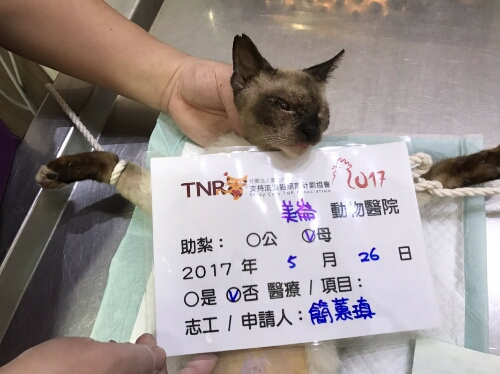 誘捕者暱稱: nomal 性別: 母 花色: 暹羅 誘捕地點: 花蓮花崗山 結紮醫院: 美崙動物醫院 結紮費用: 1350 助紮者: 已付款:Teresa Kaox2, 雪雪x2, Sophia Kuox1, 小彰x1, 林秀紋x1, 林秀紋x1 額外醫療費用申請: 一眼功能喪失,眼球萎縮,有分泌物