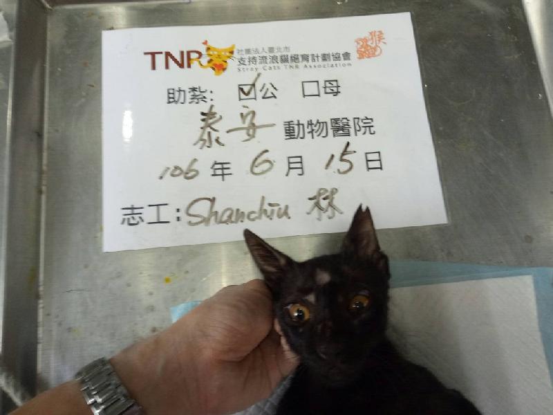 誘捕者暱稱: Shan-Chiu Lin 性別: 公 花色: 黑 誘捕地點: 前鎮滇池街 結紮醫院: 泰安動物醫院 結紮費用: 700 助紮者: 已付款:Rexx1, nidox1, 蔡小魚x1 額外醫療費用申請: 特別說明與誘捕心情: 不負責任的餵養人只餵不紮讓這裡貓口大增,由於數量太多無力好好餵養,使得巷弄內的大小貓都跑過馬路出來自來水公司覓食,並將原本該處控制得宜的貓群驅趕至另一端