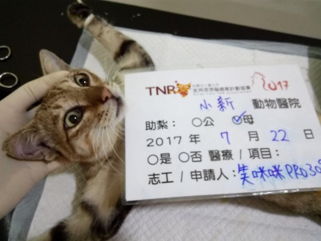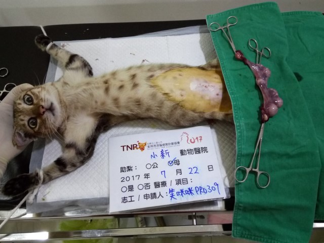 這隻貓咪也是小小隻的樣子,聽到醫生說應該是母貓時,我還很高興的認為今天成綪不錯,抓到很多母貓,辛苦值得了。可是手術過後,醫生打電話來說,很不幸的,她已經懷孕了!