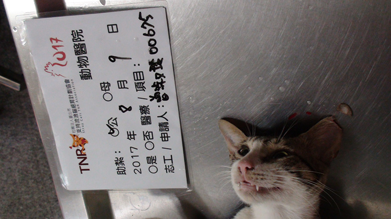 這隻灰虎斑公貓是新來餵養區的貓,不知道從哪冒出來,看起來年輕個性憨厚氣勢低感覺常被老公貓欺負,身上老掛彩,一開始發現時就想抓紮他,但若被別的公貓欺負就會又消失一陣子沒出現,颱風後比較常看到,趁餵食時成功誘捕進籠,8/11出院與原放,術後狀況良好。最後感謝協會的幫忙與謝謝助紮的您。
