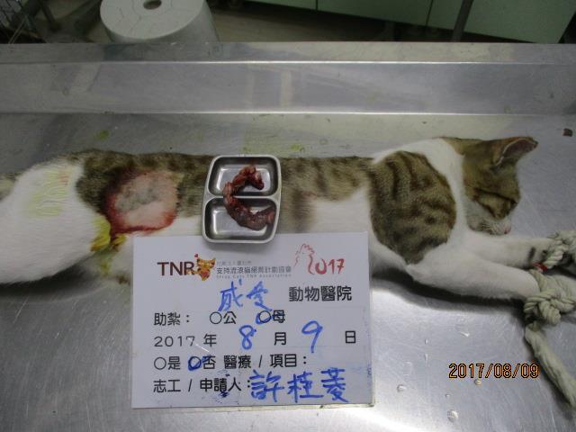 誘捕者暱稱: cherry.shu 性別: 母 花色: 白底虎斑 誘捕地點: 民族路108巷 結紮醫院: 成愛動物醫院 結紮費用: 1500 助紮者: 已付款:鄭余丞x1, Ryanx1, nepttakox1, 何小姐x2 額外醫療費用申請: 特別說明與誘捕心情: 今年因偶有路過才發現此巷內的空地有一群街貓,斜對面就有便當店,想想應該是靠廚餘生活的孩子,經固定餵食觀察後大小貓約有7隻也有哺乳母貓,這兩個月已抓紮了3隻公貓由愛心貓友幫忙負擔節育!母貓警覺性高只能持續誘捕,希望能在秋季之前能夠達到9成結育