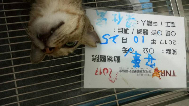 誘捕者暱稱: 梁仕宏 性別: 母 花色: 虎斑 誘捕地點: 高雄市鳳林四路 結紮醫院: 安華動物醫院 結紮費用: 1200 助紮者: 已付款:梁仕宏x1, Linda Weix2, 小伊x1 額外醫療費用申請: 特別說明與誘捕心情: 24號晚上剛好朋友有空,於是也請他騎一台車,載著兩個誘捕籠來大寮抓紮,一路騎過鳳山接近大寮,竟然下著雨,所以平日在空地的貓咪都不知往哪去躲雨了,所以在露天處只能放一些罐頭肉,看牠們會不會出來吃。其他有屋簷遮雨的地方則再放飼料。這次兩個籠子選擇放在市場較後端,雖然不是貓群聚集處,不過常看見固定貓咪在放料後就跑出來吃,這次設好籠後,約10分鐘內,賓士貓就已入籠,虎斑貓還在籠外猶豫,不過稍微調整方向後,牠也就進籠了。希望今天27號過去時天氣良好,比較方便作業。