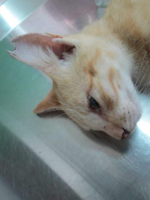 小橘這2個星期才出沒在內埔鄉興南村展興路的馬路旁,可能餓肚子所以喵喵叫了2天,發現他時就準備誘捕,等2天可能太餓了,也才誘捕成功,11/14送至愛生醫院,3天即可出院原放,希望小橘無論到哪裡都能和居民好好相處,謝謝協會的幫助,更謝謝捐助者的愛心滿滿。