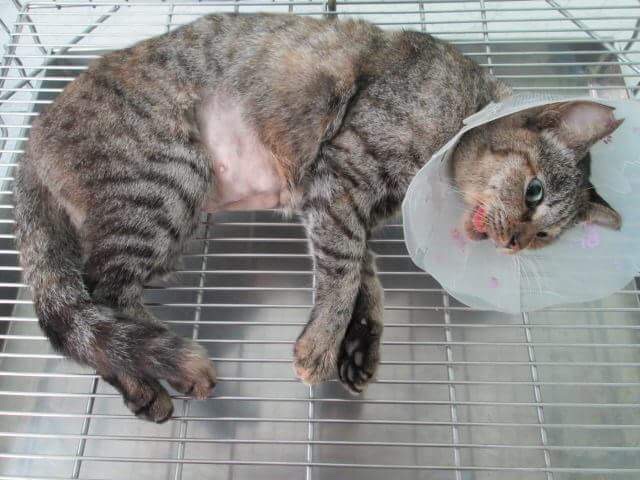 這隻貓咪以前這個區域沒有看過、可能從竹田早市場那邊過來的。第一次看見她的時候大腹便便、心裡想只能等她生完再抓。還好老天爺有幫忙、固定時間出來覓食順利誘捕進籠、已經沒奶了、但是乳腺還是有點腫、辛苦了貓咪媽媽!謝謝大家支持