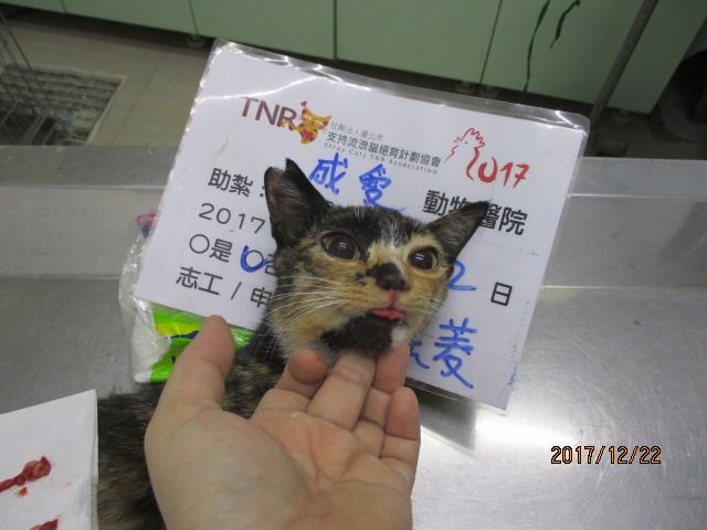 狗友在早市附近餵養浪狗時發現的街貓群,因住戶也會丟廚餘餵食街貓,造成數量繁衍至大小10多隻,且此區域母貓甚多,這是誘補第10隻母貓,目前儘快進行結育計劃,以免造成更多無辜生命流浪!
