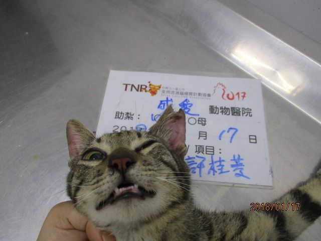 誘捕者暱稱: cherry.shu 性別: 公 花色: 虎斑 誘捕地點: 鹿港鎮友愛街 結紮醫院: 成愛動物醫院 結紮費用: 1000 助紮者: 已付款:ashx1, Angel Linx2, 黃志傑x1 額外醫療費用申請: 特別說明與誘捕心情: 志工住家隔壁的街道,去年9月底看到無人居住的庭園式倉庫門口貼張告示,警告禁止於門口餵食流浪狗,當下覺得怪異,於是特別觀察是否有鄰居或是愛媽有餵食浪狗的狀況,卻發現原來是流浪孕貓把附近的廚餘桶垃圾咬到此處,讓屋主誤以為是有人在門口餵食,經過一段時間觀察並將母貓引至住家前餵食,才發現孕貓身邊還有3隻前一胎的貓孩及一隻成年公貓,目前已抓紮兩隻貓孩(一橘子二虎斑),原本是誘捕黑白公貓,卻意外抓到沒遇過的隻虎斑公貓!