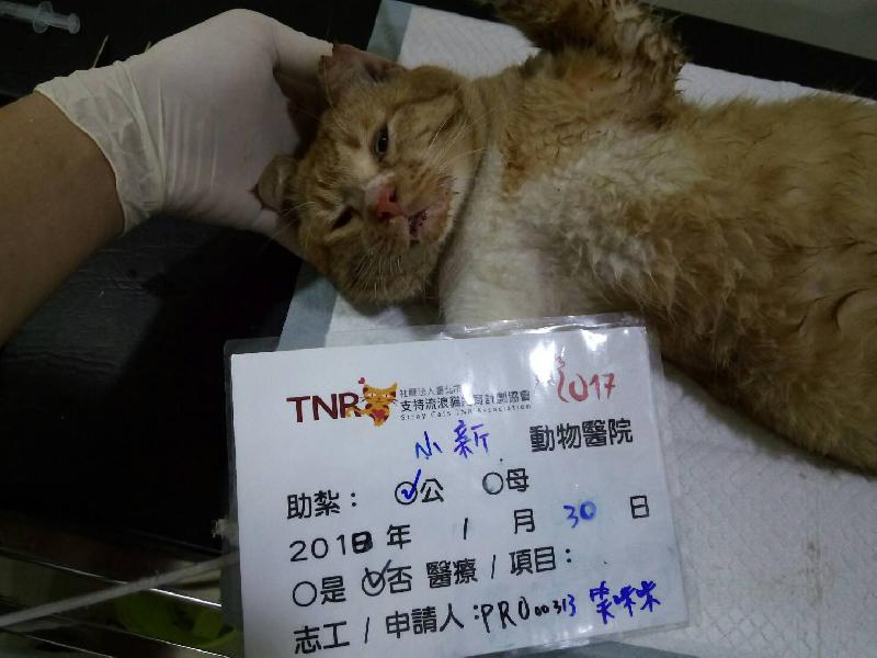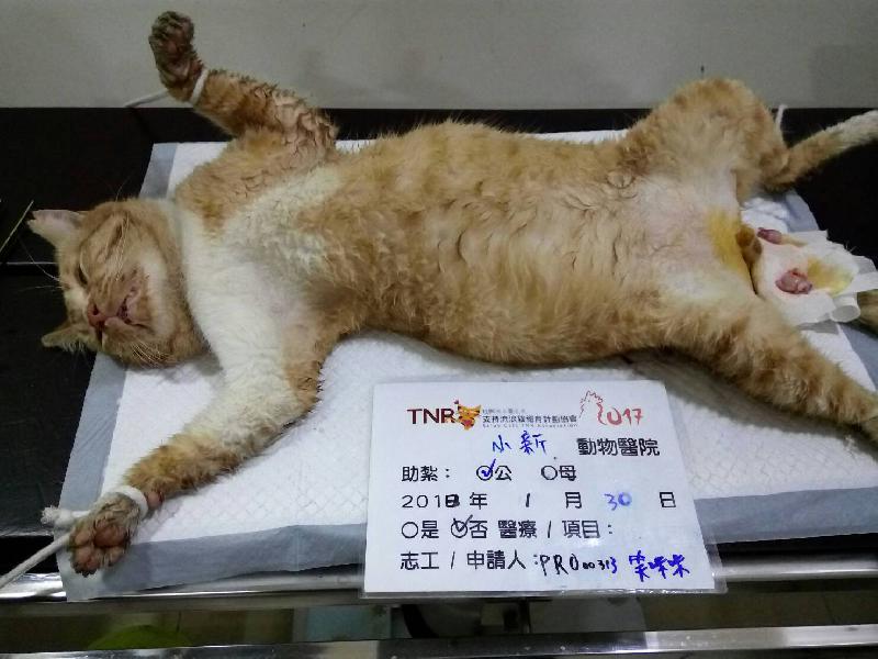 誘捕者暱稱: 笑咪咪 性別: 公 花色: 橘色虎斑 誘捕地點: 城峰路舊城內 結紮醫院: 小新動物醫院 結紮費用: 700 助紮者: 已付款:樂樂與白白x3 額外醫療費用申請: 特別說明與誘捕心情: 昨晚抓到那隻小白橘後,今天繼續努力。因為昨天這隻大公貓一直吃不到食物不耐久候,最後竟然一走了之不再出現,所以今晚一來就看到他在路邊等了,心中暗自竊喜,趕緊架好兩個誘捕籠。但結果仍和昨晚一樣,完全不進籠,所以又把克難的落罩式搬出來,沒想到這隻警覺性更高,連落罩式的也騙不了他。此時來了一對年輕人拿著好吃的食物引誘他,趁著他在專心吃時,愛媽乾脆拿著落罩直接給他罩下去,哈哈,抓到了!