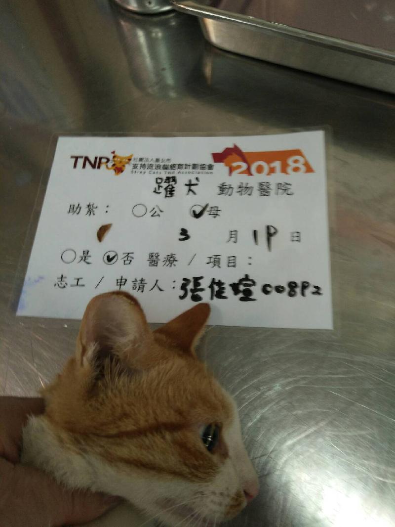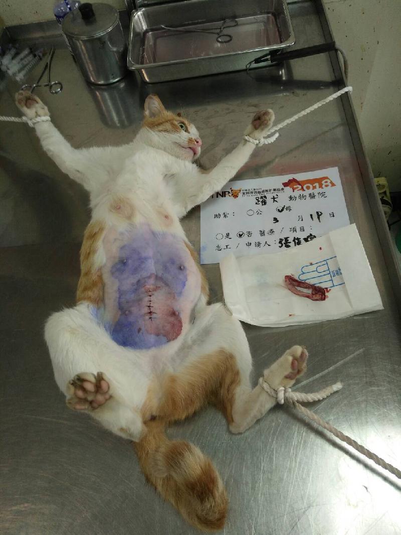 107.03.19 結紮。這隻白橘和玳瑁是長期在某夜市生活的貓,已經生過2、3胎,貓越來越多,導致居民不友善,最近又生一胎6隻,我等到小貓斷奶後,就馬上抓來結紮。謝謝協會和善心人士的幫忙,讓牠們不會再生出流浪的下一代。