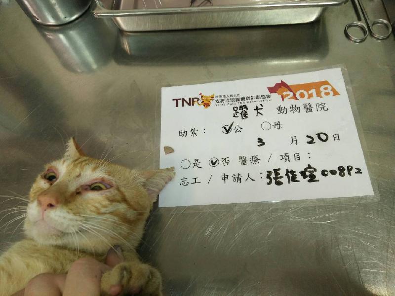 107.03.20抓紮。這隻公橘貓很謹慎,是我去年抓紮時一直抓不到的貓,這次特地開了很香的罐頭引誘牠,果然就在3分鐘之內進籠,真是開心,預計3.23原放。謝謝協會和捐款的善心人士。