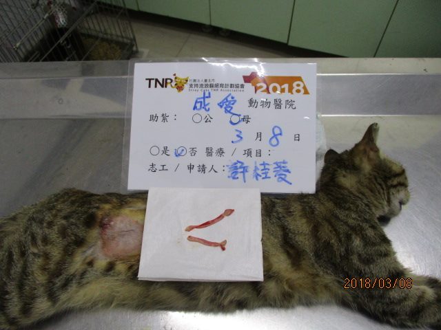 結紮醫院: 成愛動物醫院 結紮費用: 1500