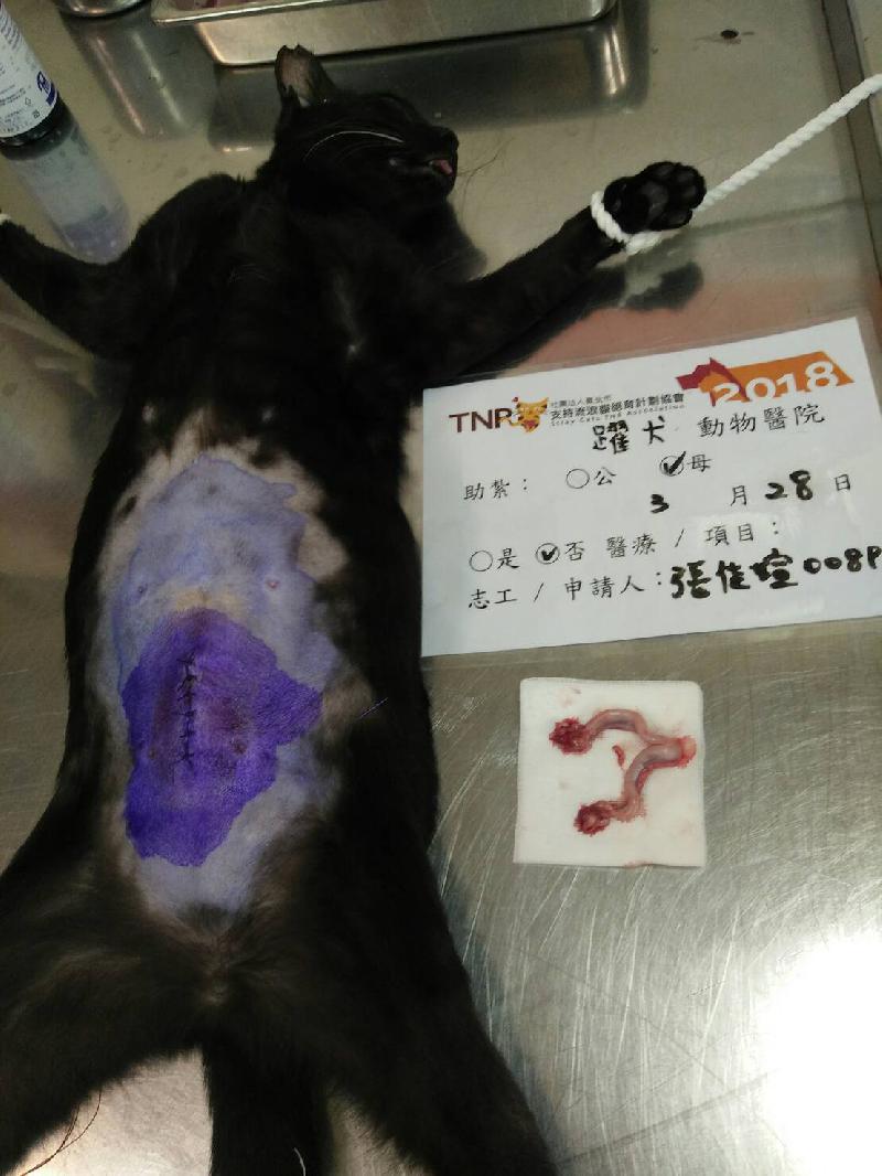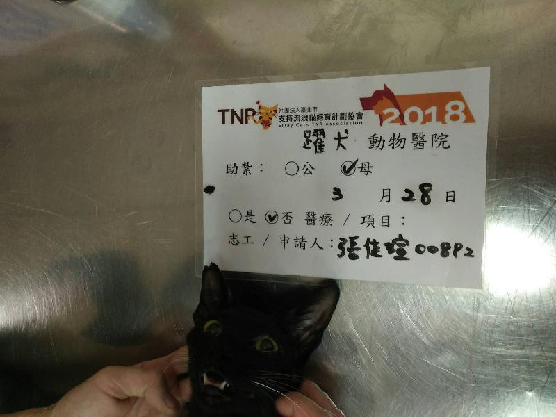 牠是在市場出沒的貓,發現牠時很瘦弱,可以說快奄奄一息,所以有先在罐頭裡拌營養品讓牠補充營養,餵食一陣子後,毛長了,體力也有了,目測目前大概七、八個月大,就撈牠來結紮了。謝謝協會和愛心捐款人捐助結紮費用,謝謝。