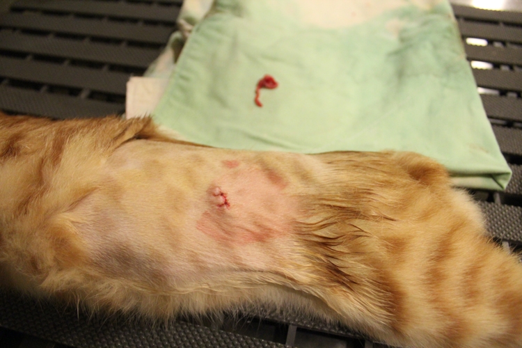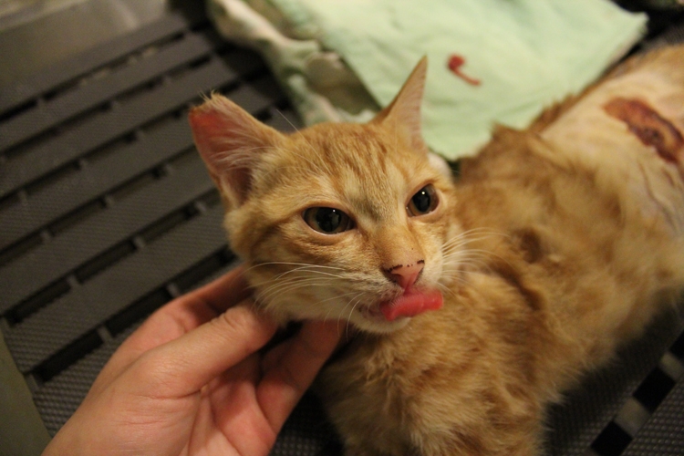 小貓跟著母貓一起進籠,小貓估計已經有五 六個月大又是女生,所以依然進行結紮手術。
