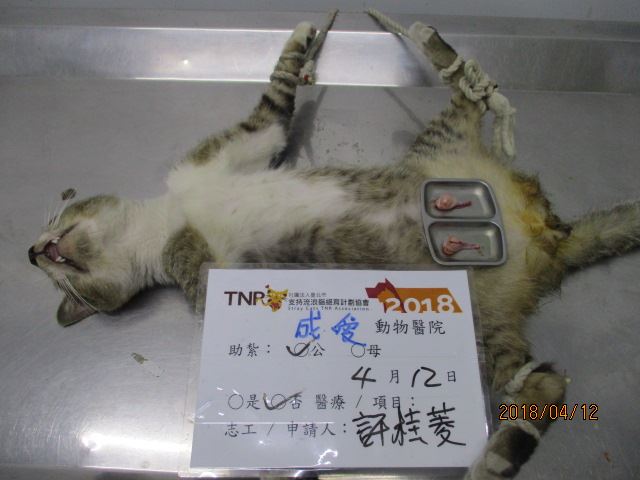 結紮醫院: 成愛動物醫院 結紮費用: 1000