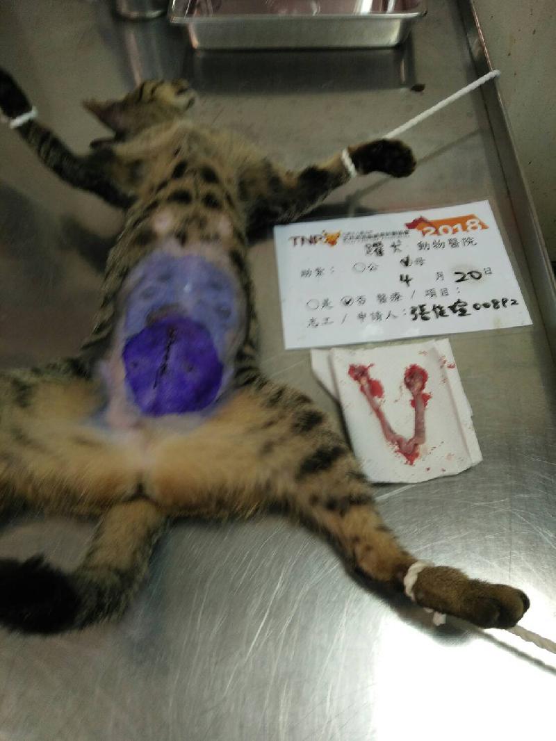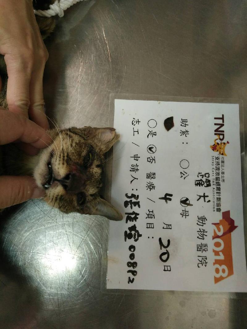 這隻虎斑母貓平常生活在安平開台天后宮附近,那裡有攤販在餵養,但是也有很多流浪狗,牠的兄弟姊妹就被咬死好幾隻了,今天抓到,就趕快送紥住院,之後原放後攤販們會繼續餵養牠。謝謝協會這個平台和善心捐款人的幫忙。