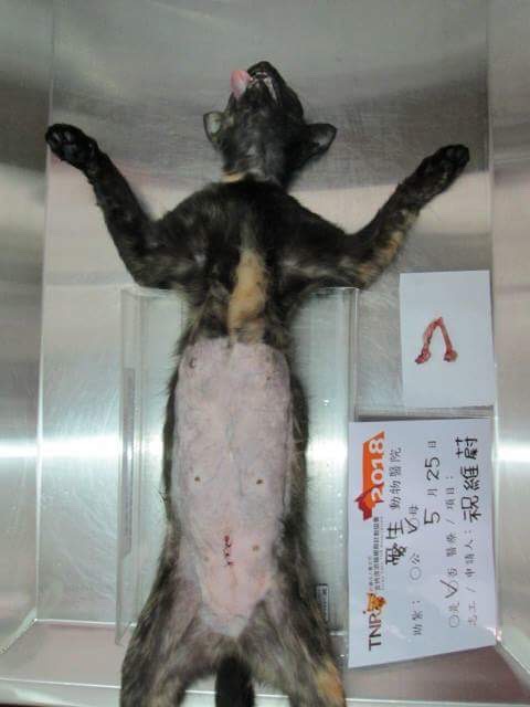 瘦瘦的玳瑁媽媽已經生過兩胎了,每天晚上固定時間會出現在家門口討吃,昨天晚上竟然自己乖乖進籠子吃飯。於5/24晚上誘捕成功,5/25早上送至愛生醫院結紮,7日後接回,謝謝協會,謝謝愛生醫院的醫護人員,更謝謝捐贈人士的愛心!