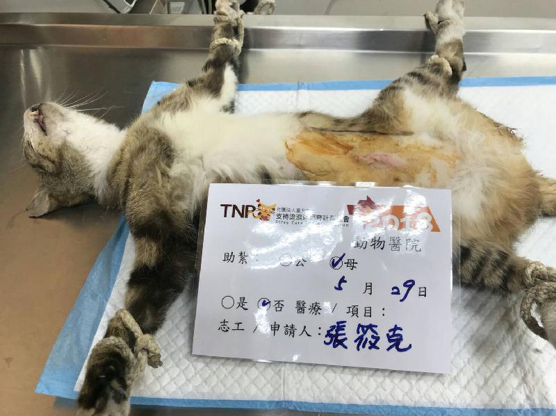 目前貓媽已順利絕育,背上傷口需要一段時間住院持續治療