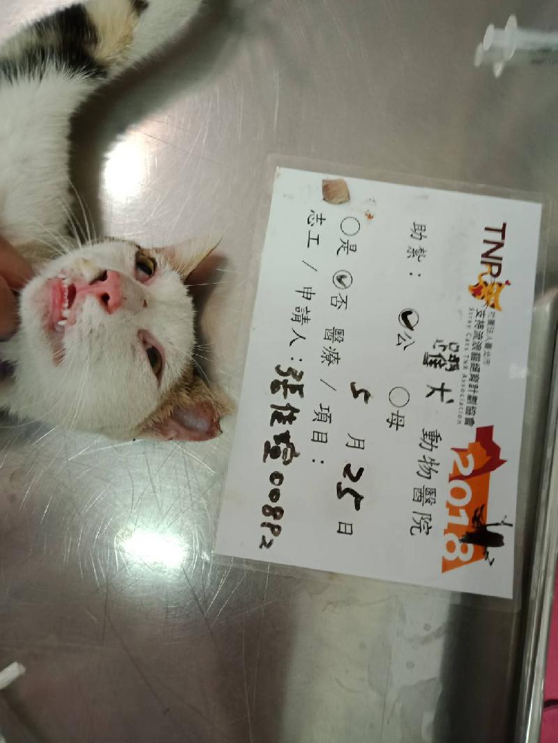 花色: 白底虎斑 誘捕地點: 台南市安南區