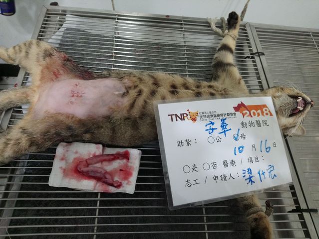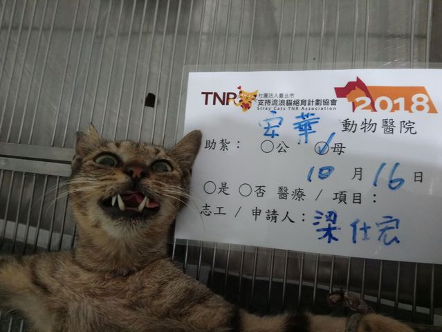 誘捕者暱稱: 梁仕宏 性別: 母 花色: 虎斑 誘捕地點: 高雄市大寮區永芳路 結紮醫院: 安華動物醫院 結紮費用: 1200 助紮者: 已付款:Domino Leex1, ciax1, 平x1, Shandix1 額外醫療費用申請: 特別說明與誘捕心情: 昨天到永芳路另一處的空地誘捕,協助我的女學生小筑已到場等我,這邊的貓咪除了她餵食外,也有一位在這餵食已有數年的大姐到場。這邊的貓咪聽到牠們的機車聲才陸續出來吃飯。她們將貓咪引誘出來後,我在適合的地點架籠,不過牠們的警覺心較空屋那邊的貓咪為高,所以剛開始並不敢主動接近籠,於是我們先往前去另一處放飼料,耐心等待約十幾分鐘後,這隻虎斑才慢慢地靠近籠吃罐頭,順利將她誘捕到。