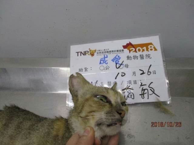 花色: 三花虎斑 誘捕地點: 彰化縣鹿港鎮中山路
