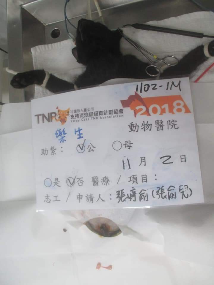 這隻貓咪是新來的,跑到餵養區吃飯,原本是要抓母貓結紮,孩子就先入籠,剛好帶來結紮。謝謝協會跟大家的幫忙,辛苦了。