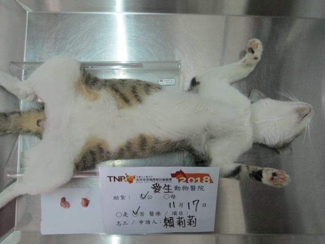花色: 白底灰斑 誘捕地點: 屏東市公裕街巷口
