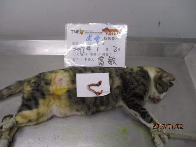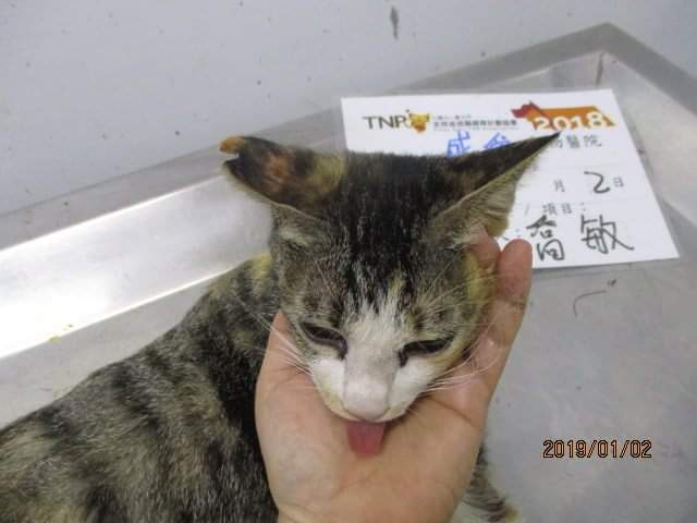 誘捕者暱稱: 喬敏 性別: 母 花色: 三花 誘捕地點: 彰化縣鹿港鎮中山路與復國街之間的小巷 結紮醫院: 成愛動物醫院 結紮費用: 1500 助紮者: 已付款:平x1, Nien-Chinx1, 吳慧璇x1, fridax1, Bellex1 額外醫療費用申請: 特別說明與誘捕心情: 這是我在彰化誘捕到的二十七隻TNR浪貓。是該地區僅存的一隻未紮成年母貓,該貓之前逃脫過非常難捕捉,因為已經看到她剛被交配,傾盡全力好不容易誘捕成功,怕過了冬天她就生下第三胎所以就趕緊帶去結紮,擔心當地的浪貓群因此貓而持續繁衍擴大。