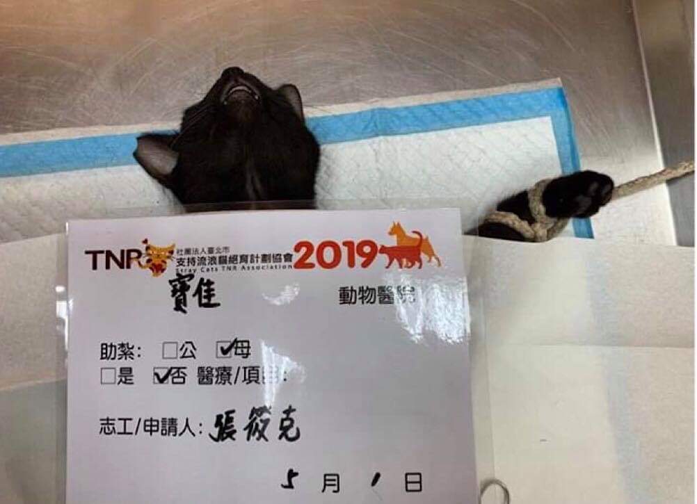 黑貓媽媽懷孕了,胎盤已處理火化,待黑貓絕育傷口休養恢復,在進行原放