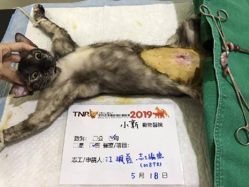 這隻貓媽媽已經生了三隻貓咪,送紮前一直發情,還好現在可以放心了,貓媽媽不用再遭受生育之苦了!感謝協會!