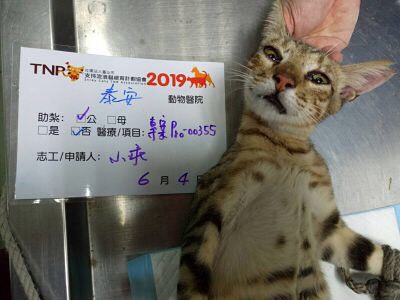 誘捕者暱稱: 小乖 性別: 公 花色: 咖啡色虎斑 誘捕地點: 高雄市新興區文化路 結紮醫院: 泰安動物醫院 結紮費用: 700 助紮者: 已付款:WanYux3 額外醫療費用申請: 特別說明與誘捕心情: 高雄市新興區浩然里文化路44號1F,因為當地店家只有餵養未做結紮造成小貓生育繁殖能力驚人,當地里長威嚇不准居民餵食,並沒有採取TNR工作,放任小貓無辜的生育,目前唯一,文化路44號店家已經落實放籠撈捕貓咪送紮,但是貓咪實在太多,每晚深夜的抓紮,真的不知?!何時?!才可以完成!很多半套的愛媽餵養,只能讓我每晚的久等,喵喵的入籠,終於,等到了,不要放棄,我希望每街貓都是剪耳的,讓當地的居民可以跟貓孩子和睦相處,感謝捐款的善心愛貓人士跟協會有大家的支持才能讓我持續抓紮!感恩大家!