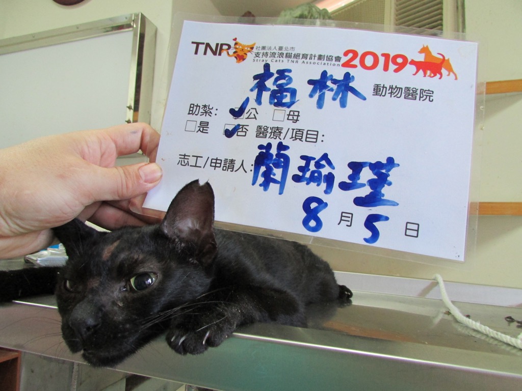 小黑是同區域中較弱勢的一個孩子,只敢在大家吃飽了以後才出來收拾菜尾。被抓到後嚇到一直撞籠子,把頭都撞破了,但是即使如此害怕,他還是不會咬人兇人,只是委屈的嗷嗷叫,溫柔得令人心疼。謝謝TNR協會、謝謝好心的哥哥姊姊。