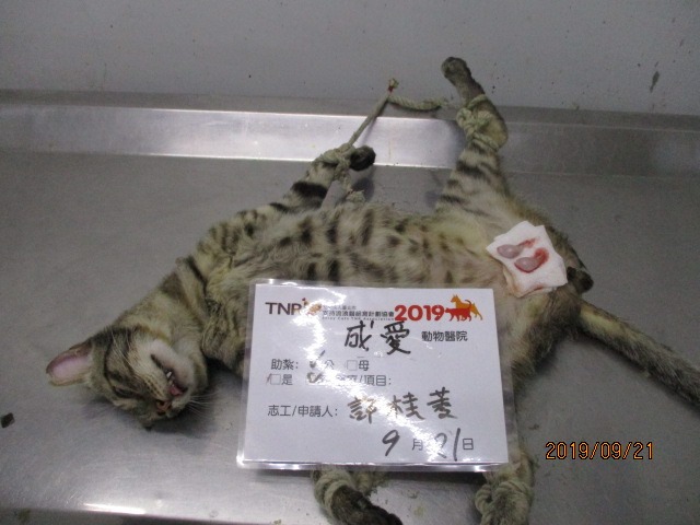 結紮醫院: 成愛動物醫院 結紮費用: 1000