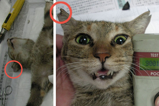 這隻差點要放掉的說....因為左耳有類似剪耳的裂痕(如附圖1)