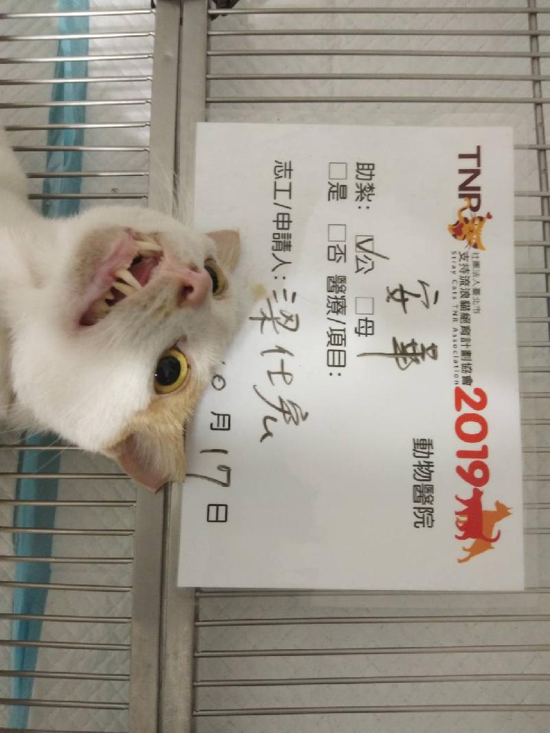 花色: 橘白 誘捕地點: 高雄市旗山區延平一路546巷