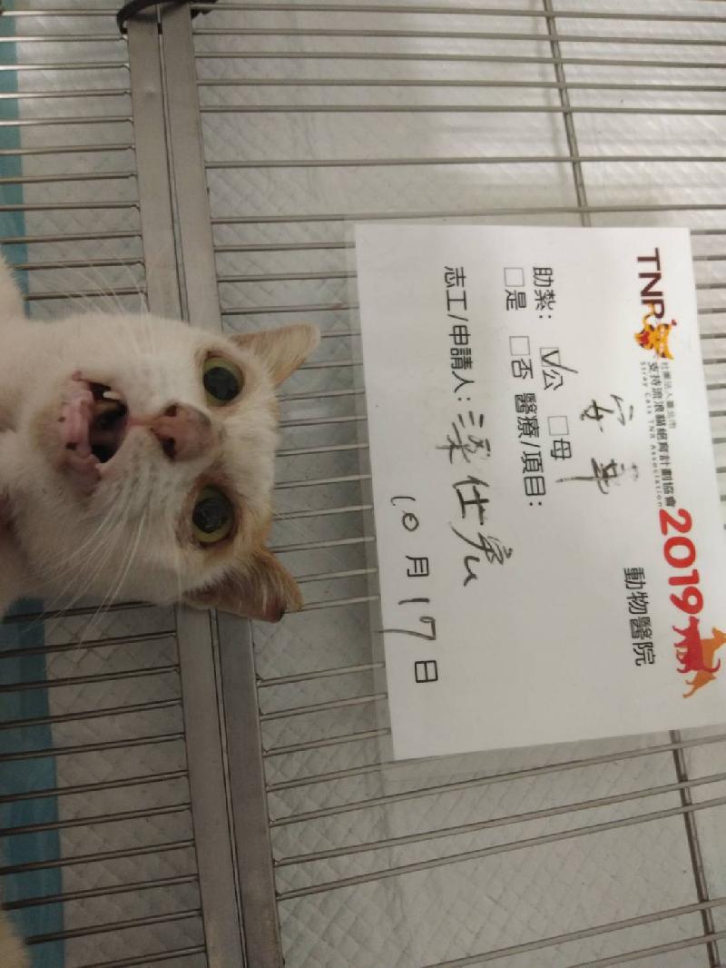 花色: 橘白 誘捕地點: 高雄市旗山區延平一路546巷