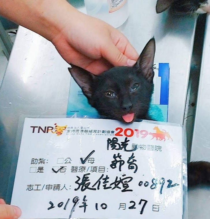 申請的這隻黑色貓咪,是和黑白貓咪於108.10.27凌晨在鄰居的花店前抓到的,當時是2隻一起進籠,當我掀開布簾時真的有一箭雙鵰的驚喜感^_^。