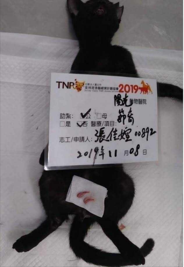 108.11.08凌晨在鄰居家門前抓到的小黑,下午送紮。是公貓。這隻貓咪還蠻親人的,術後會觀察一段時間,如果確定親人會幫牠po網找家。謝謝大家捐助結紮費用。