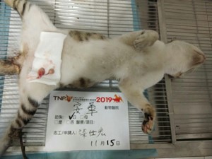 花色: 白底虎斑 誘捕地點: 高雄市旗山區延平一路