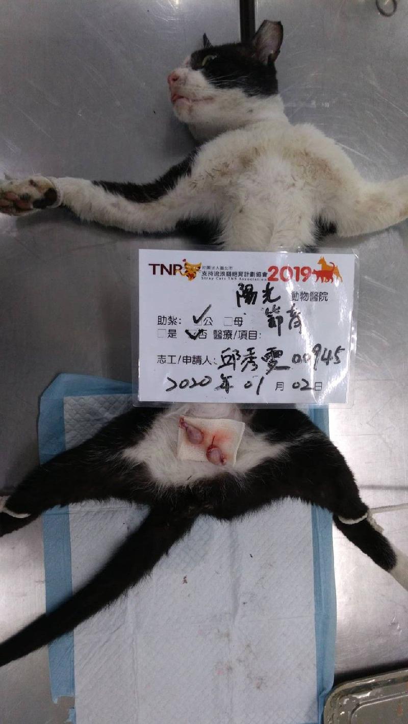 花色: 黑白賓士貓 誘捕地點: 高雄市茄萣區