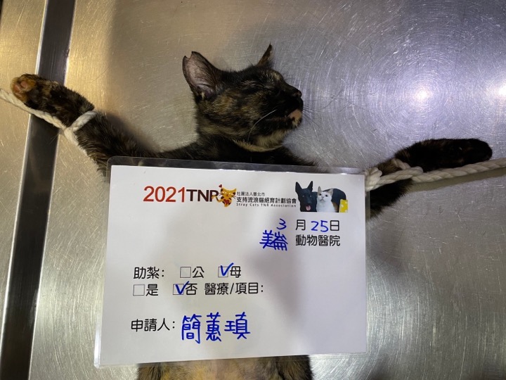 花色: 玳瑁 誘捕地點: 仁里停車場
