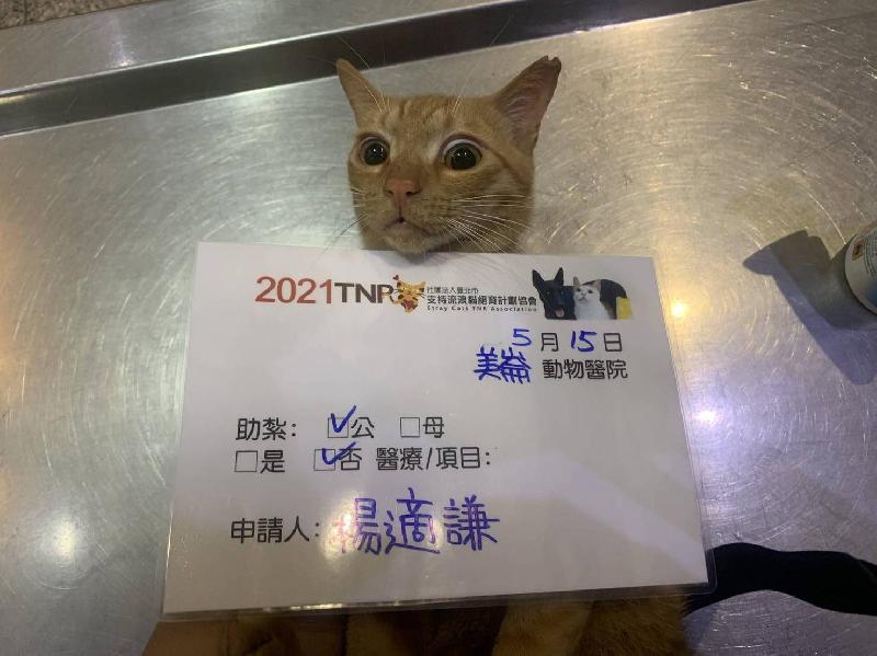 花色: 橘貓 誘捕地點: 美侖國中後門