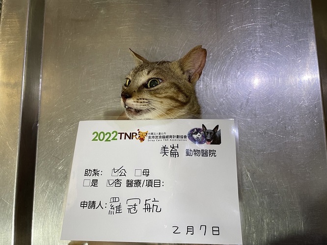 民眾通報林森路有流浪貓出沒,捕獲公貓一隻,TNR後民眾會繼續餵食,謝謝協會,謝謝助紮人。