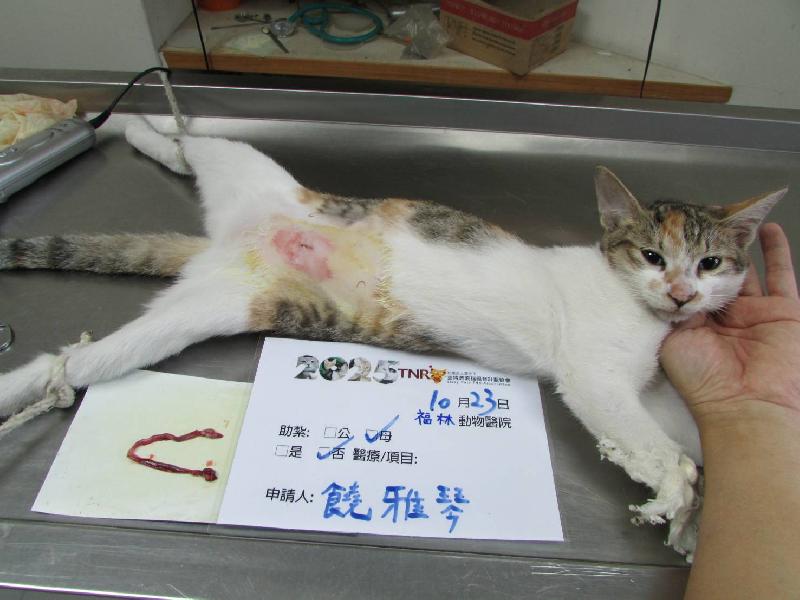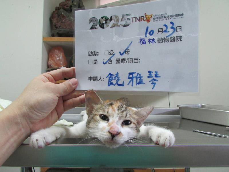 這隻貓咪在回收區生活,餵食人乾淨餵食,怕她一直生,所以在貓咪狀況很好的時候,趕快幫忙貓咪結扎,謝謝協會的幫忙,感謝