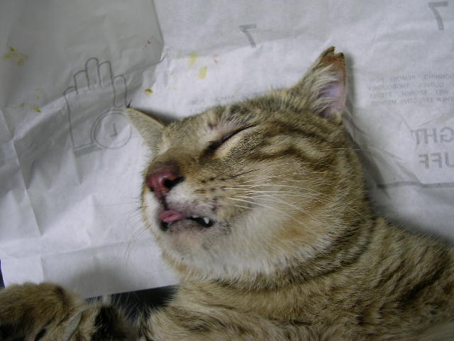 在台北市江寧里的防火巷中誘補到的,其實第一次看到這隻貓時,牠都還跟在媽媽身邊,後來牠媽媽意外車禍死亡(當地愛媽告訴我的);之後就不太常看到牠,也不定時才會出現,最近發現牠會固定出現在某防火巷,才設籠子抓到牠。