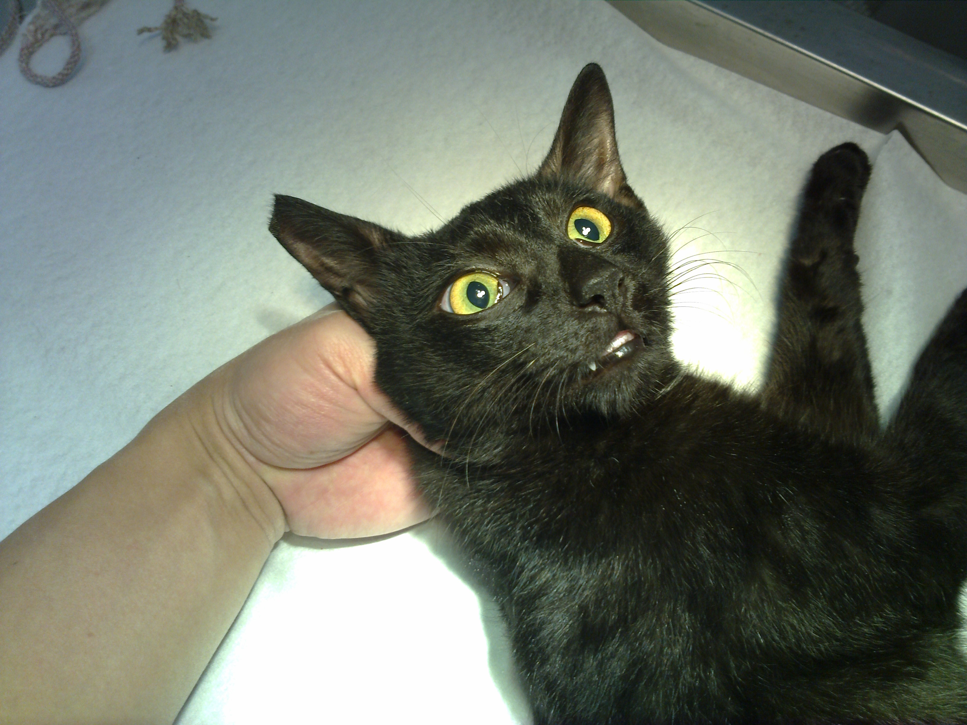 5個月大的小母貓,非常的溫馴,每次餵食時,她總是跑第一個搶罐頭吃,迷死人的小黑貓~~~忍不住都會為她特地準備罐頭